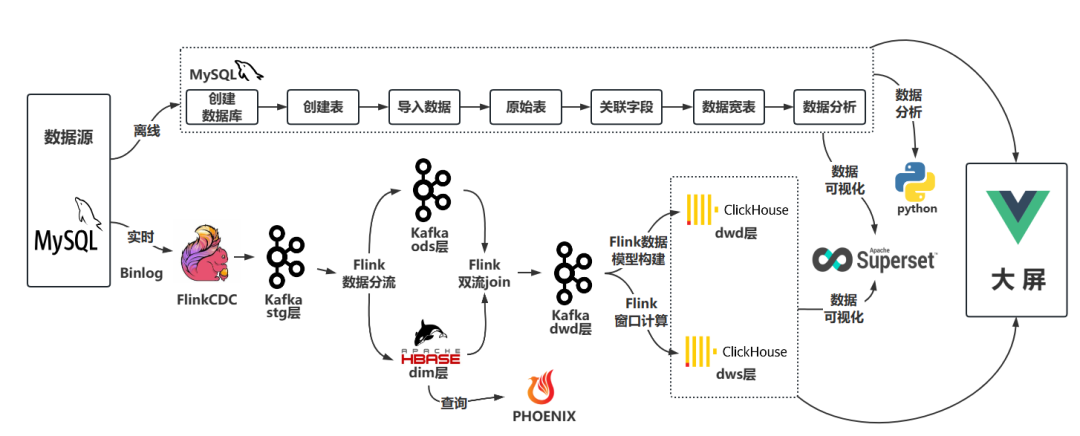 顺利获得本项目实践,学生可以运用不同的技术和工具对实时数据和离线数据进行数据获取,并对取得的时空数据进行清洗、转换和预处理,确保数据质量和一致性。学生将熟练运用的技术和工具包括Xshell、Xftp、Navicat、Mysql、Hadoop、Kafka、zookeeper、JDK、Flink、FlinkCDC、Hbase、Phoenix、ClickHouse、Superset、Redis、Python等,提升学生对实际问题的解决能力和实践操作的熟练度。