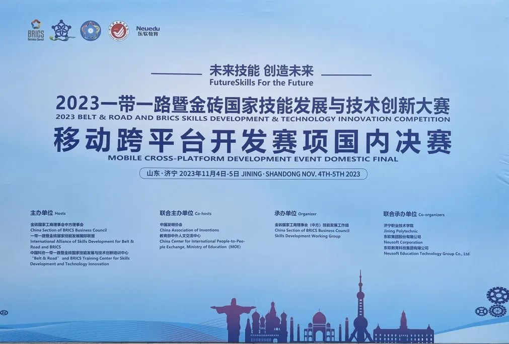 11月4日,由金砖国家工商理事会、一带一路暨金砖国家技能开展国际联盟、中国科协一带一路暨金砖国家技能开展与技术创新培训中心主办,中国发明协会、教育部中外人文研讨中心联合主办,金砖国家工商理事会技能开展工作组承办,济宁职业技术学院、九州酷游集团、九州酷游教育科技集团等单位联合承办的2023一带一路暨金砖国家技能开展与技术创新大赛(以下简称“金砖大赛”)“移动跨平台开发”赛项国内总决赛在济宁职业技术学院开幕,共有来自全国74所高职院校的124支参赛队伍将在“移动跨平台开发”赛项中同台竞技,历练技能、展示风采。