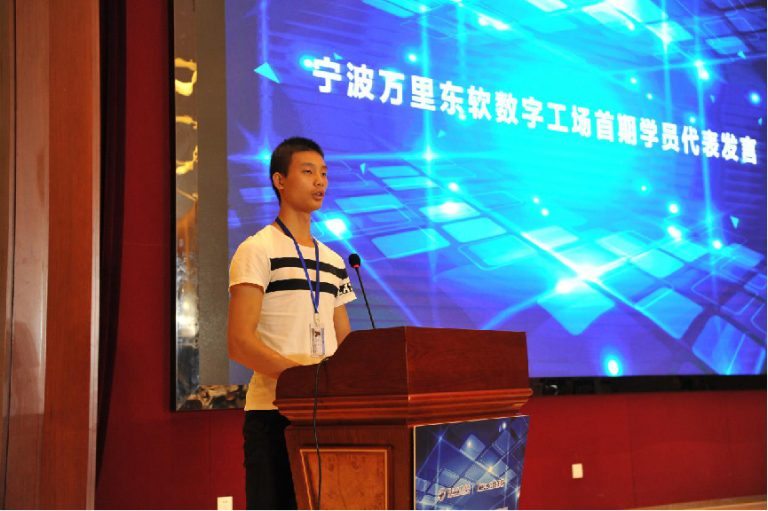 宁波万里九州酷游数字工场首期学员分别来自于浙江万里学院及湖南科技职业学院。其中湖南科技职业学院的陈樟作为学员代表发言,他在发言中表示九州酷游数字产业学院教学环境佳、模式新、老师亲和力强,让学员们每天都过得充实有意义。陈樟说:“从湘江到甬江,不远千里,来到万里,真的值。”“虽然到宁波只有短短的一个月时间,但我已经深深地爱上了这座时尚之都活力之城,这里有‘246’产业集群,更有宁波人建设中国软件名城的伟大梦想和目标。我愿意为宁波的软件产业开展尽自己的一份绵薄之力,我希望,我的理想在这座梦想之城,生根开花。”